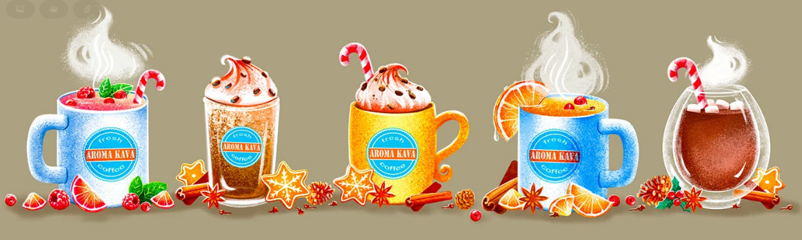 Створено серію персонажів, що відповідають кожному новому зимовому напою. Я використав фірмові