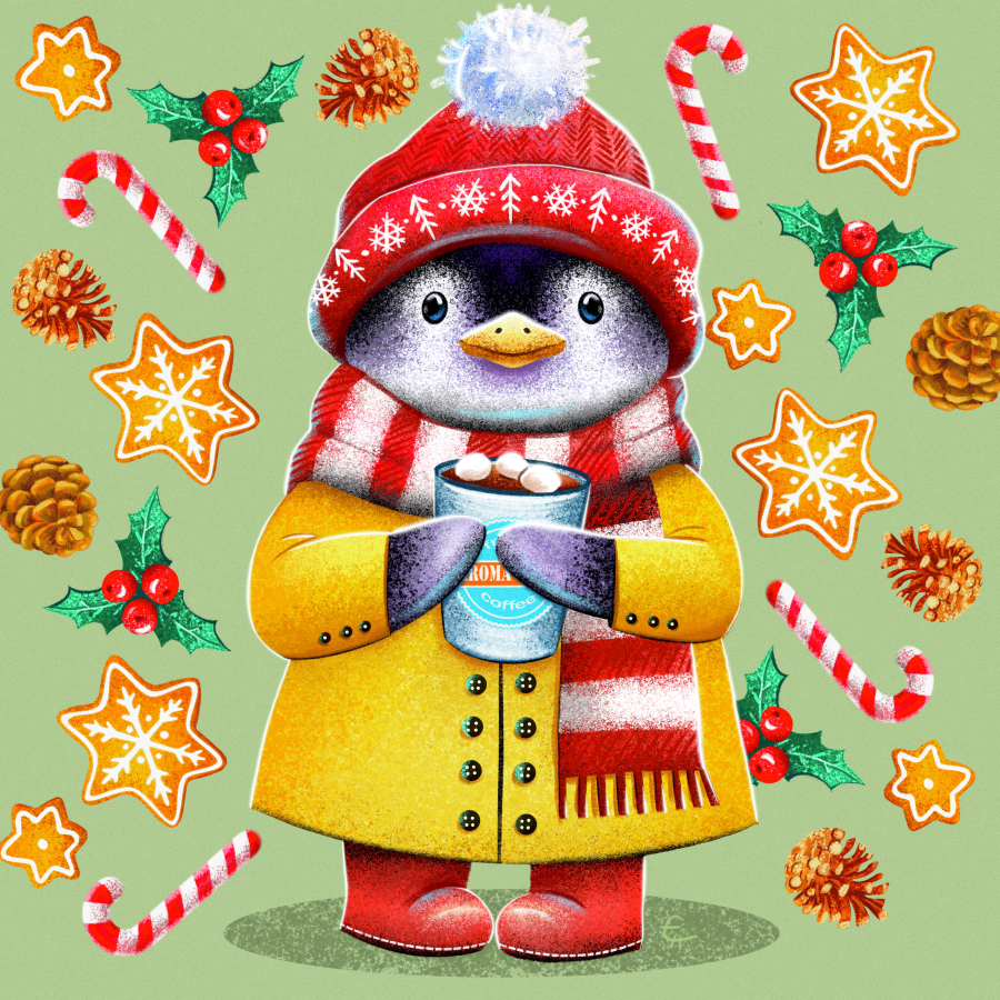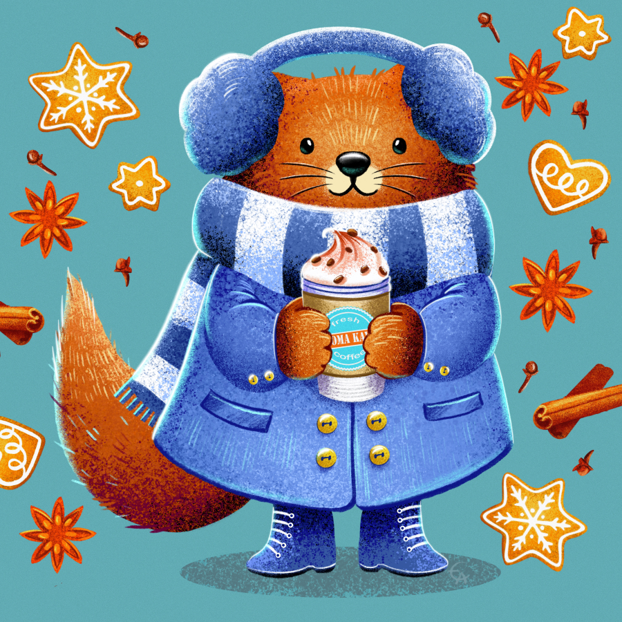A series of characters has been created to match each new winter drink. I used the signature